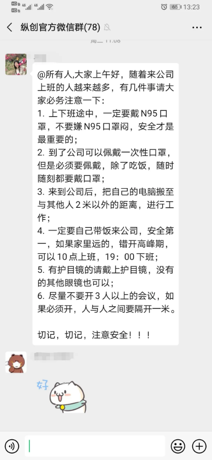 没有人能够预想到,2020年会以一场气势汹汹的战“疫”来开场。自新冠肺炎疫情发生以来,如何确保员工健康防疫与企业安全复工复产两不误,成为了每个企业攻坚克难的重要问题,对我们来说疫情就是命令,防控就是责任。防疫,纵创一直很努力,单丝不成线,独木易非林,在坎坷的抗疫道路上,我们纵创人一起!