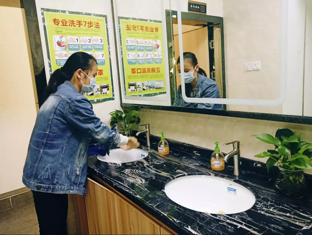 公司每日为员工发放口罩、抑菌洗手液,解决员工上班期间口罩使用、自身消毒问题,确保员工防护落到实处。